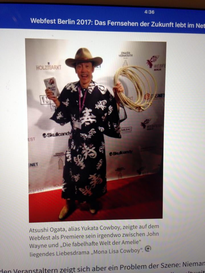 The prize was handed to the creator/director Atsushi Ogata by Joel Bassaget from Web Series World Cup! Thank you!
