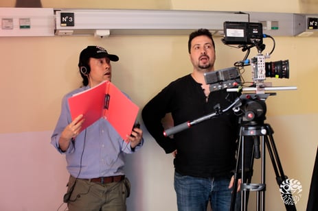 Atsushi, checking the shot as actor/director.